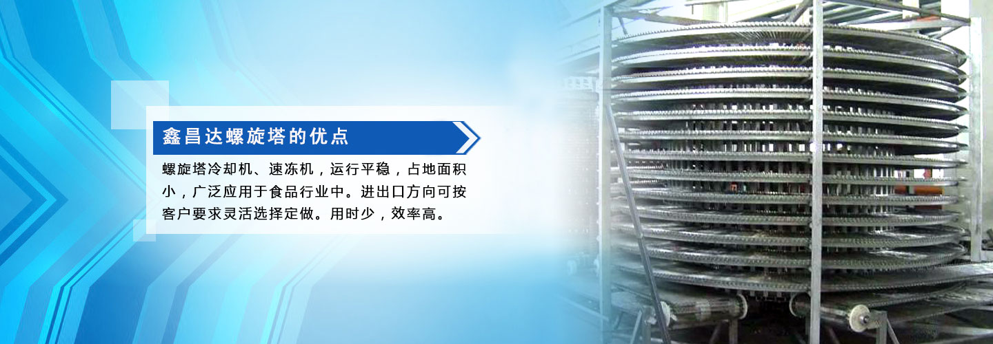 寧津縣鑫昌達機械廠主營食品回盤線,螺旋冷卻塔,輸送機設(shè)備,面食品、菜卷、春卷、蔬菜、水果、肉食、油炸品、小包裝食品的輸送,分單塔和雙塔多層不銹鋼機身,占地面積小,輸送量大,采用食品級螺旋網(wǎng)帶易清洗和維護。要形成三到6個月之間對螺旋冷卻塔進行定期檢查,若是內(nèi)部出現(xiàn)問題,應(yīng)當由專業(yè)技術(shù)人員對其維修。操作